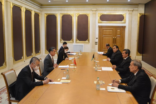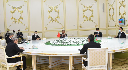 當(dāng)?shù)貢r間2021年7月12日,對土庫曼斯坦進(jìn)行正式訪問的國務(wù)委員兼外長王毅在阿什哈巴德同土副總理兼外長梅列多夫舉行會談。