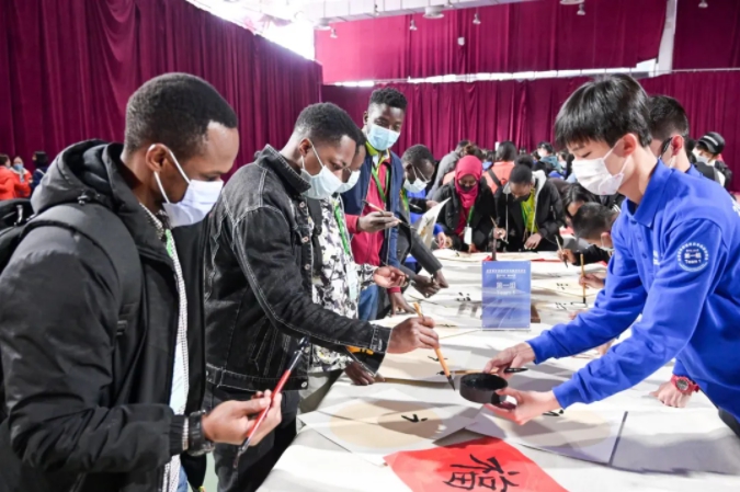 來自摩洛哥的尼娜、津巴布韋的惠靈頓、馬拉維的卡莫托和毛里塔尼亞的恩瑞等表示,與中國青少年互動體驗中國書法是我們最喜歡的活動。漢字寫起來不是很容易,但寫出來很美,宣紙上面的花紋也有各種美好的寓意,讓我們看到了中國文化的神奇魅力。我們用漢語寫下“筑夢冬奧 相約北京”,以此祝愿2022年北京冬奧會取得圓滿成功。奧林匹克格言在“更快、更高、更強”的后面加上了“更團結(jié)”,相信非洲和中國會在團結(jié)精神的帶領(lǐng)下繼續(xù)攜手共進,守望相助。