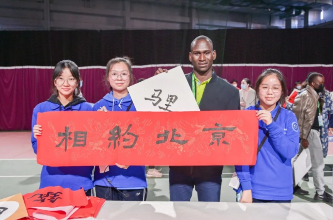 延慶的15名同學(xué)向來自44個非洲國家的45名非洲青年表示熱烈歡迎,邀請他們通過體驗中國書法來感受北京冬奧熱情。同學(xué)們用流暢的英語向非洲青年介紹中國書法的文化內(nèi)蘊,耐心地教非洲朋友一起拿起毛筆,用篆書、楷書、隸書等字體書寫“?!弊?。不少非洲青年朋友饒有興致地同“文化小大使”們探討漢字的筆畫順序,詢問紅色宣紙上花紋的意義。雖然略顯生澀,但非洲青年朋友按照“小先生”的指導(dǎo),一筆一畫認真地寫起自己的名字和自己國家的中文譯名。最后,延慶的同學(xué)們和非洲青年們一起寫下了“文化小大使”活動主題標語“筑夢冬奧 相約北京”。青春的歡聲笑語讓冰天雪地的場館顯得格外熱鬧。